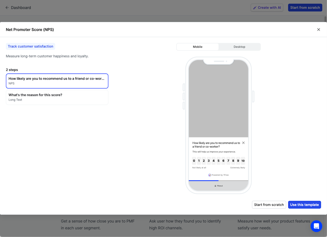 1Flow’s in-app survey platform helps consumer brands and SaaS companies understand who their customers are, what they need and why some are churning away, so that they can build better products and turn more people into happy customers.
